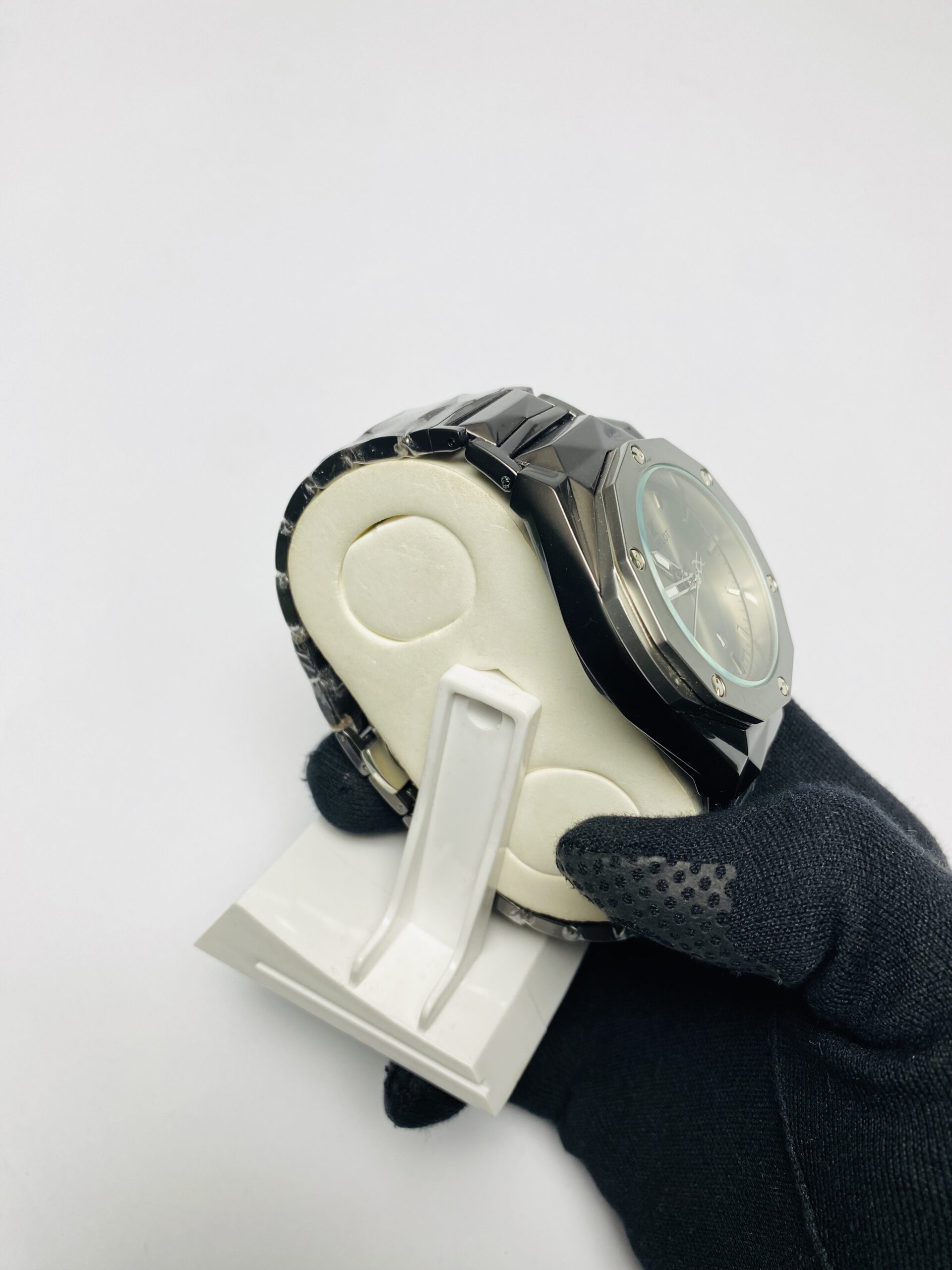 Hublot Diamond-Cut–Style Watch (Dark Grey Dial)