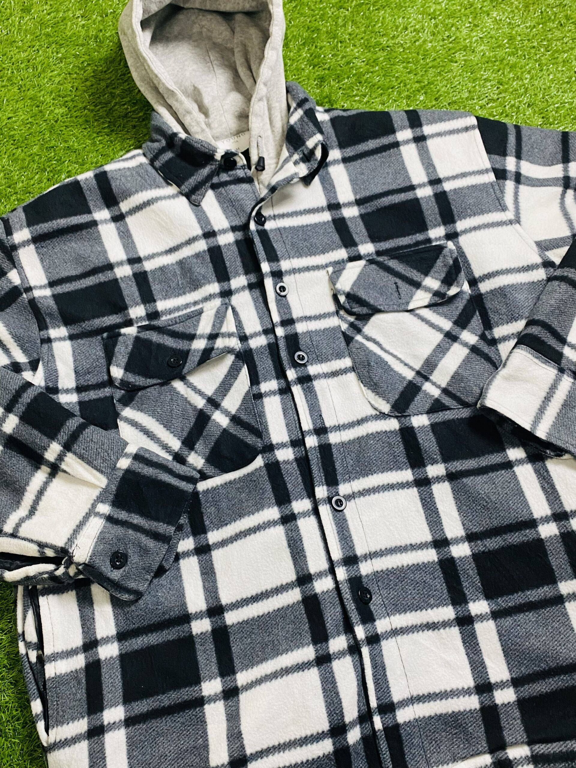 Upgrade your everyday style with this Legendary Flannel Men’s Hooded Shirt in a clean white & black combo—now available at Street Bazaar. This thrift find blends classic flannel vibes with a modern hooded twist, making it perfect for layering in cooler weather or wearing on its own for a laid-back look.