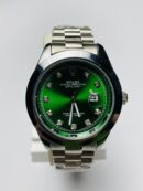 Level up your wrist game with this Rolex Date–style watch, now available at Street Bazaar. This standout thrift find features a rich Green dial paired with diamond-style hour markers, giving it a bold yet classy luxury-inspired look.