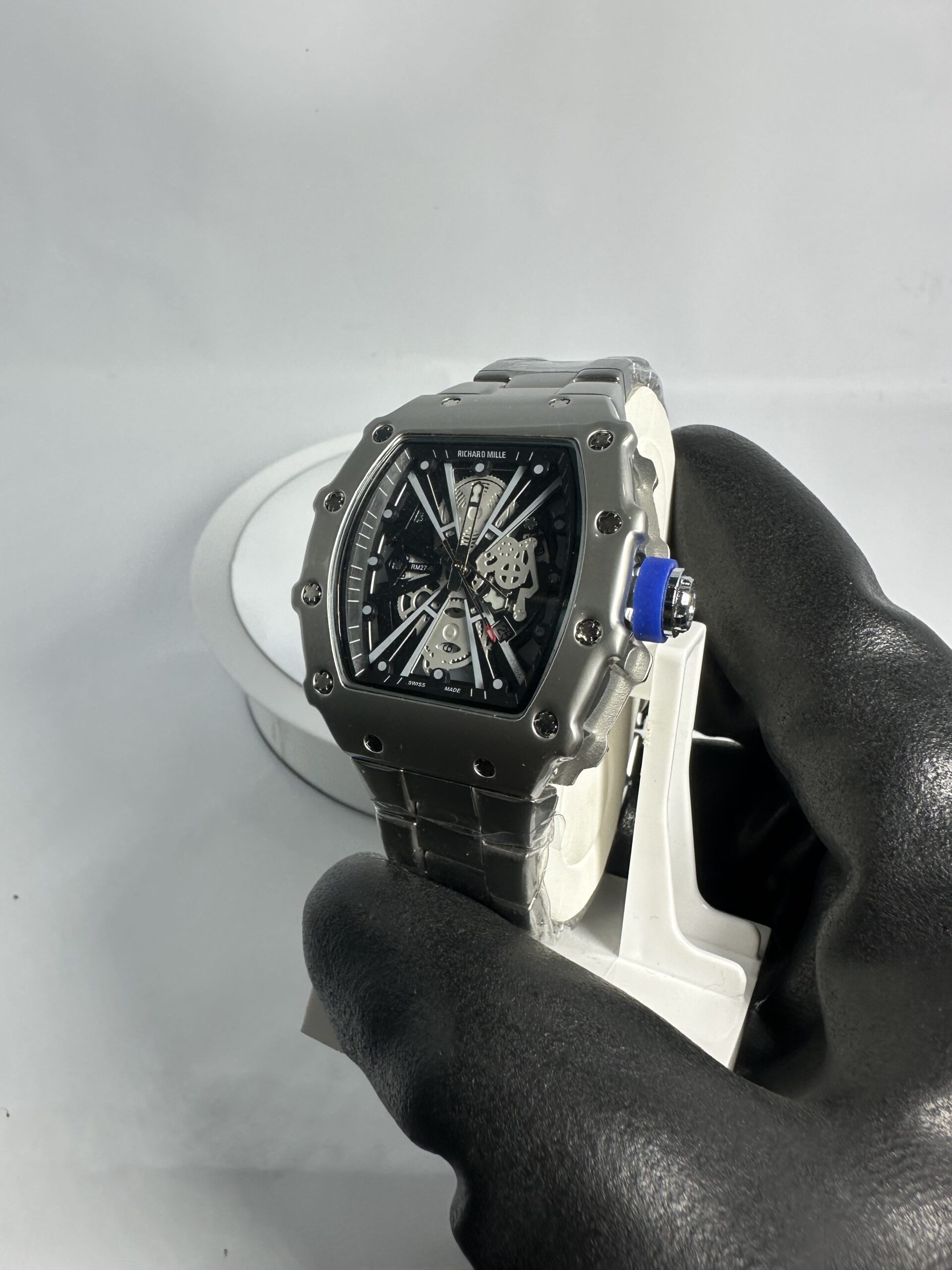 Make a bold statement with this Silver-Toned Richard Milk Skeleton Dial Watch, now available at Street Bazaar. This eye-catching timepiece is all about detail—featuring a skeleton-style dial that lets you see the inner mechanics, giving it that luxury-inspired, high-end look.